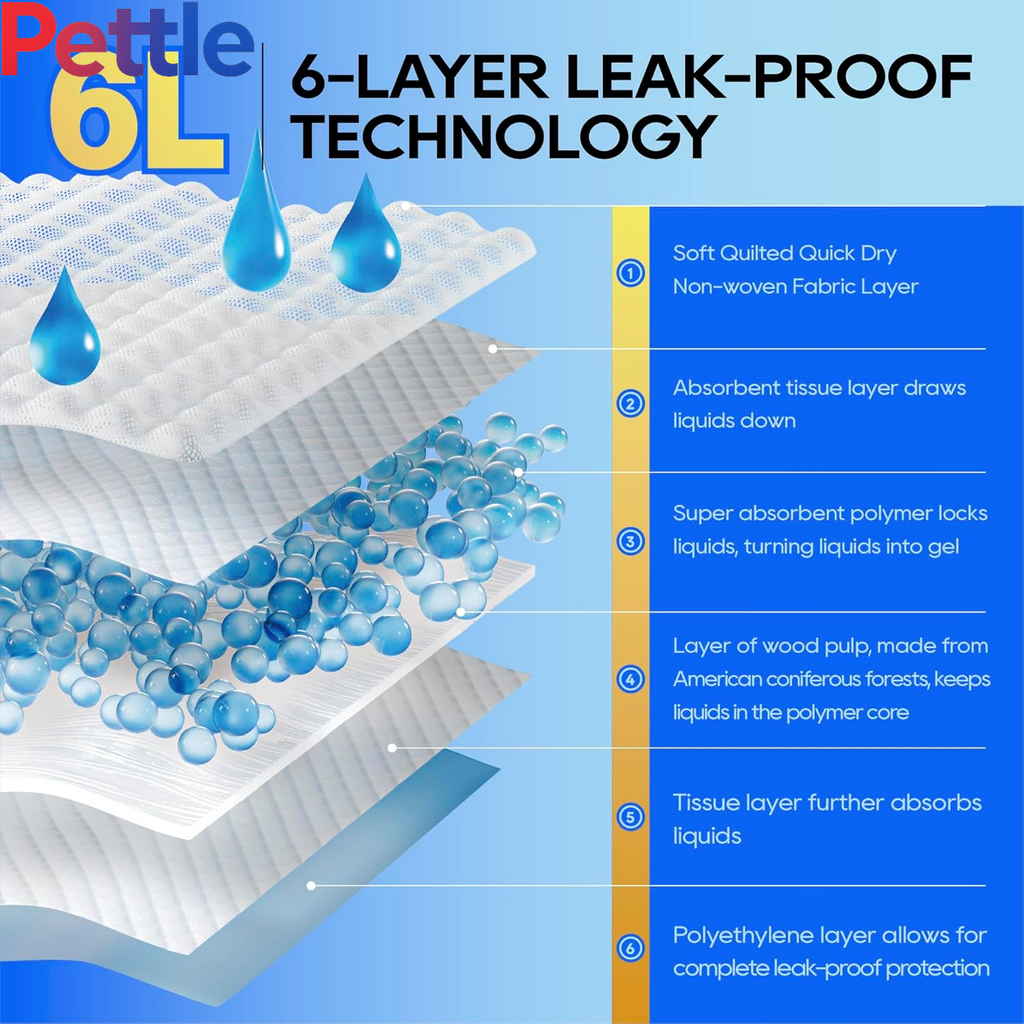 - Super-absorbent core helps keep accidents off your floor, furniture, car seats and more