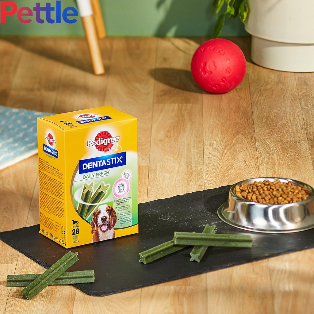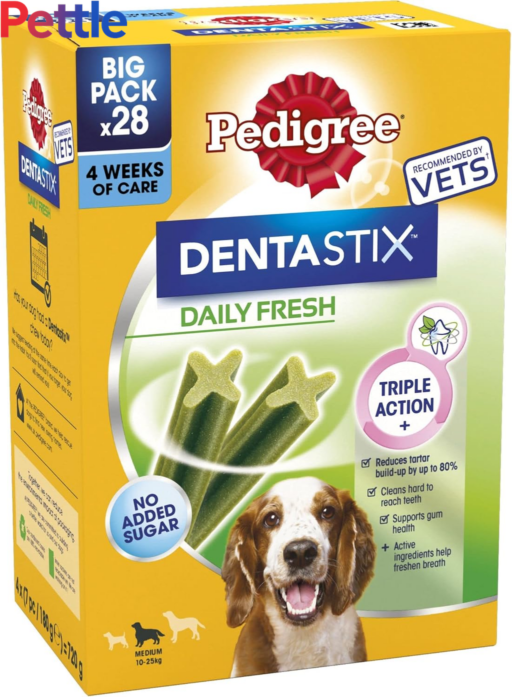 Dog treats bulk, 4 x 28 sticks, 112 sticks of PEDIGREE DENTASTIX Fresh Daily Dental Chews, Dog treats for medium dogs