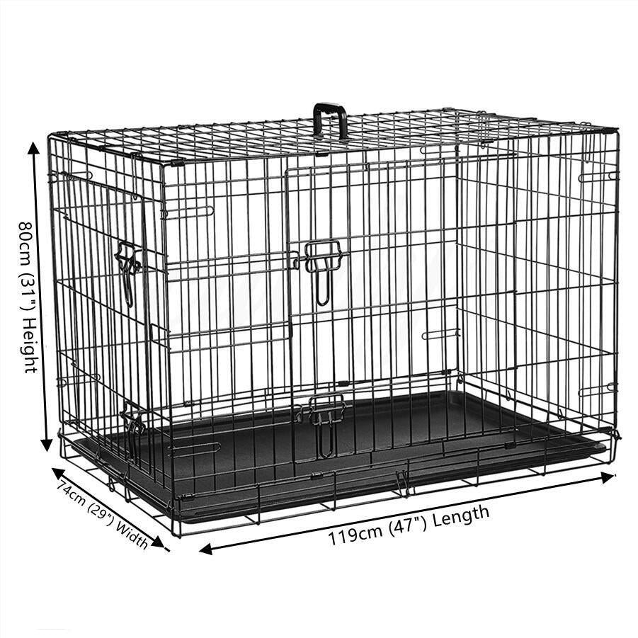 - 【High Quality】These sturdy secure double door dog crates are made of solid strong steel,the strong metal frame has an anti rust black powder coating for long lasting use.With a brilliant base tray constructed to be non-chew.