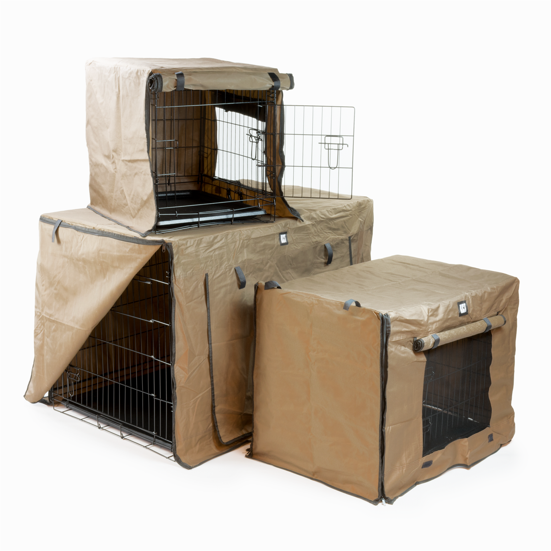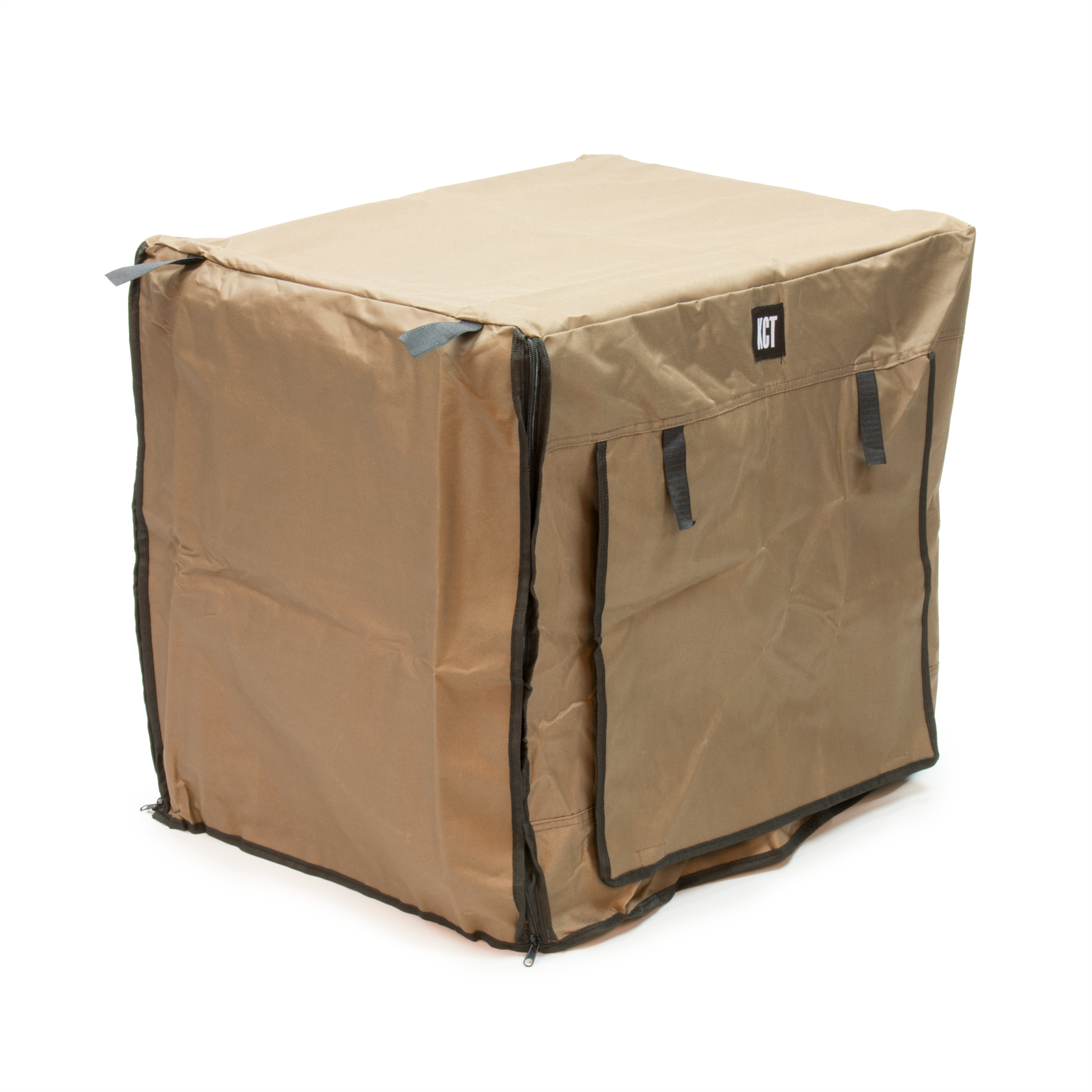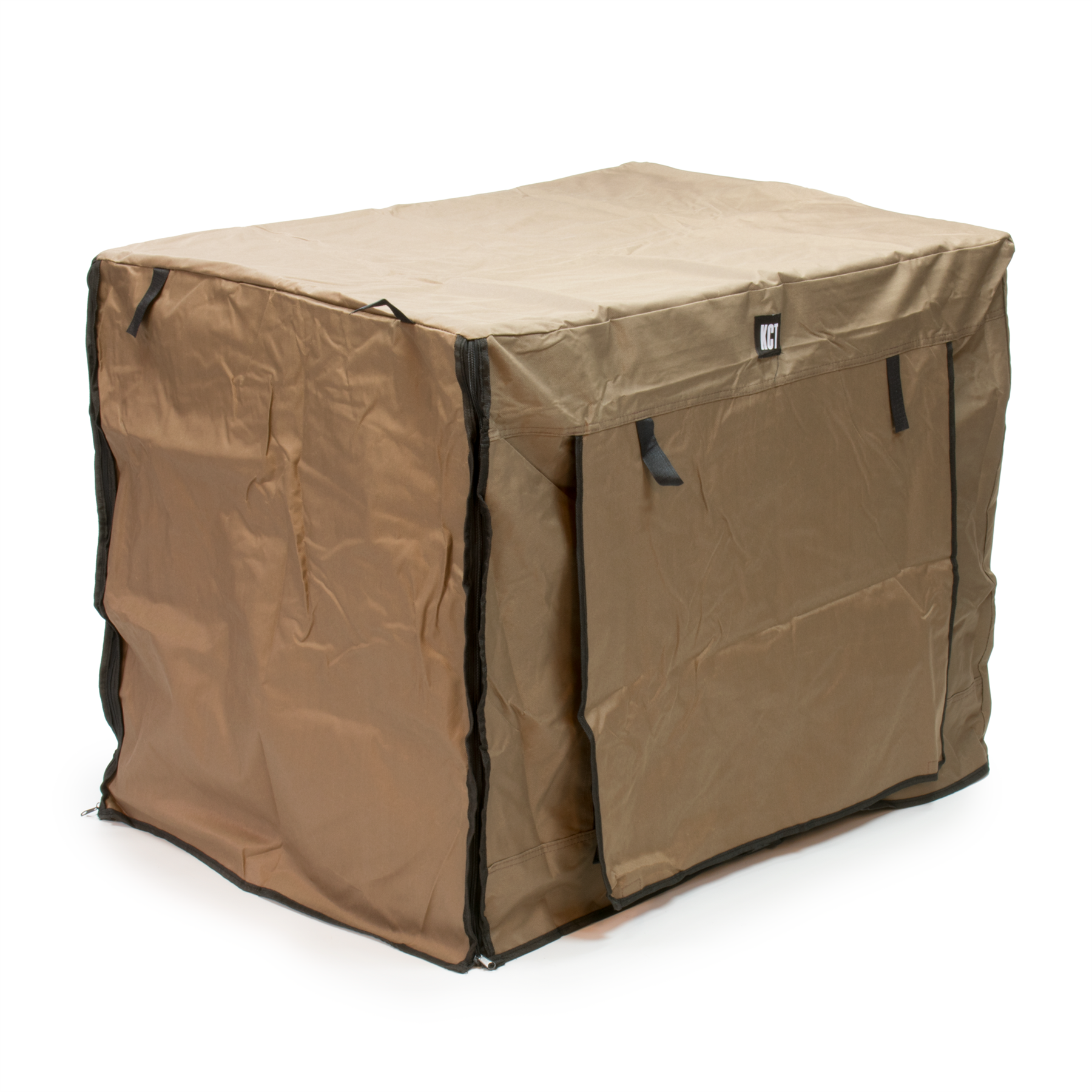 KCT pet cage covers are designed to fit perfectly over the corresponding size of KCT Pet Crate, but can also be used universally to cover any other pet cage of the same size and dimensions. The covers feature a double zip door that can be rolled up and secured with hook and loop patches to keep it open as well as a mesh window that can be covered or opened in the same manor.