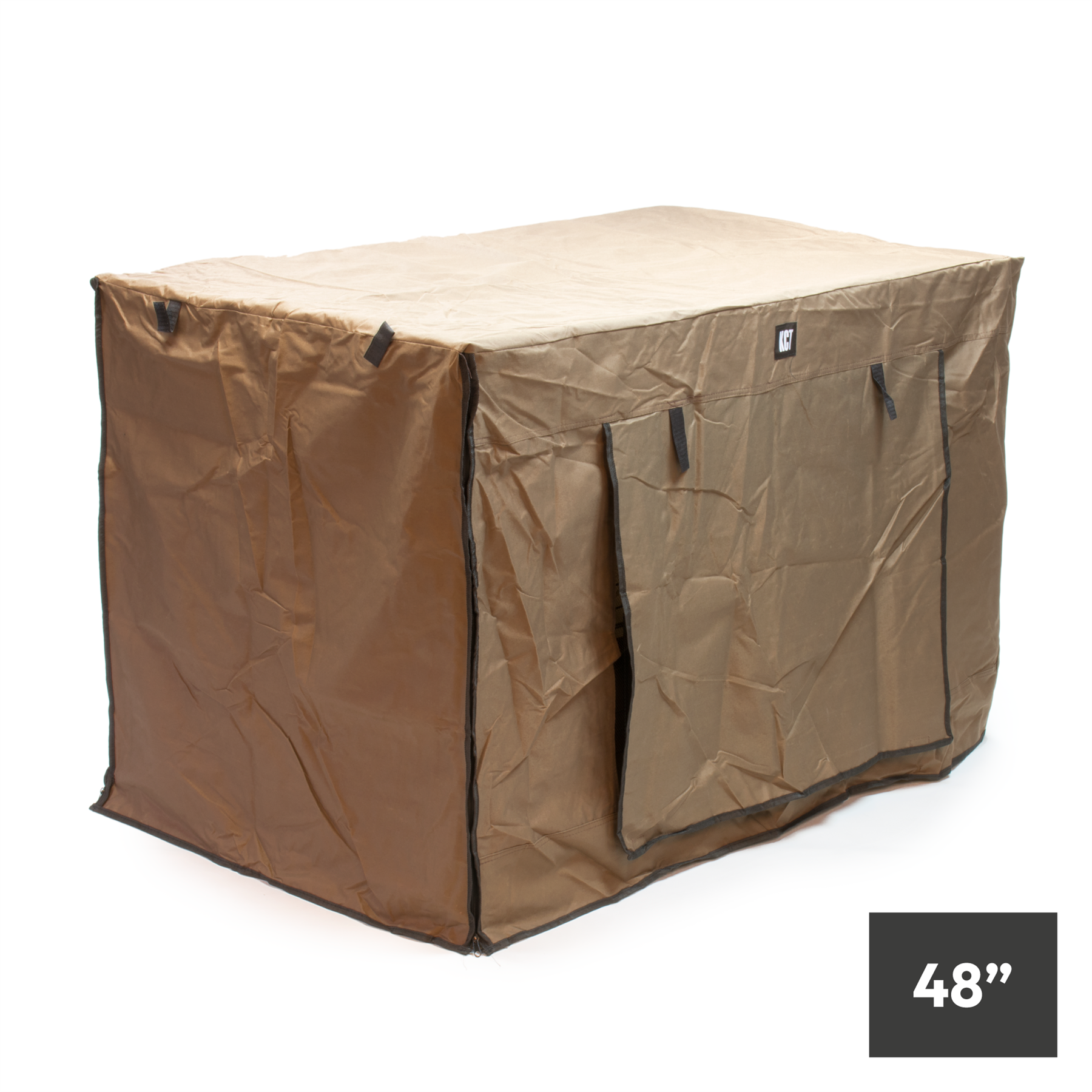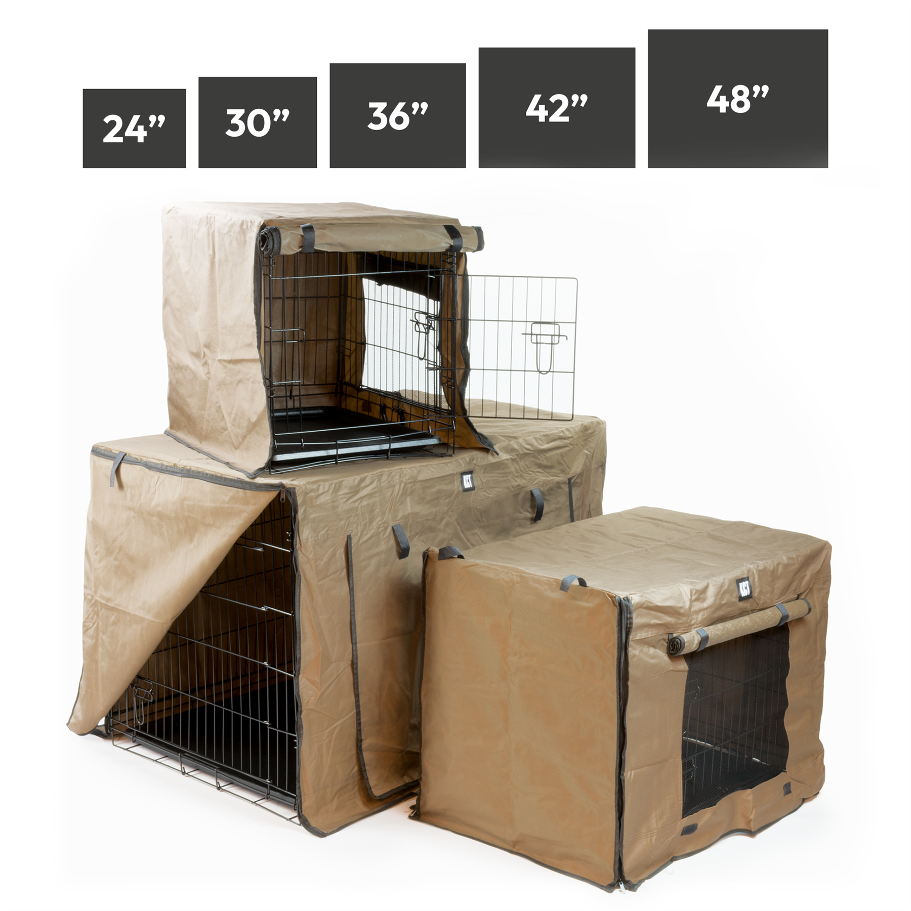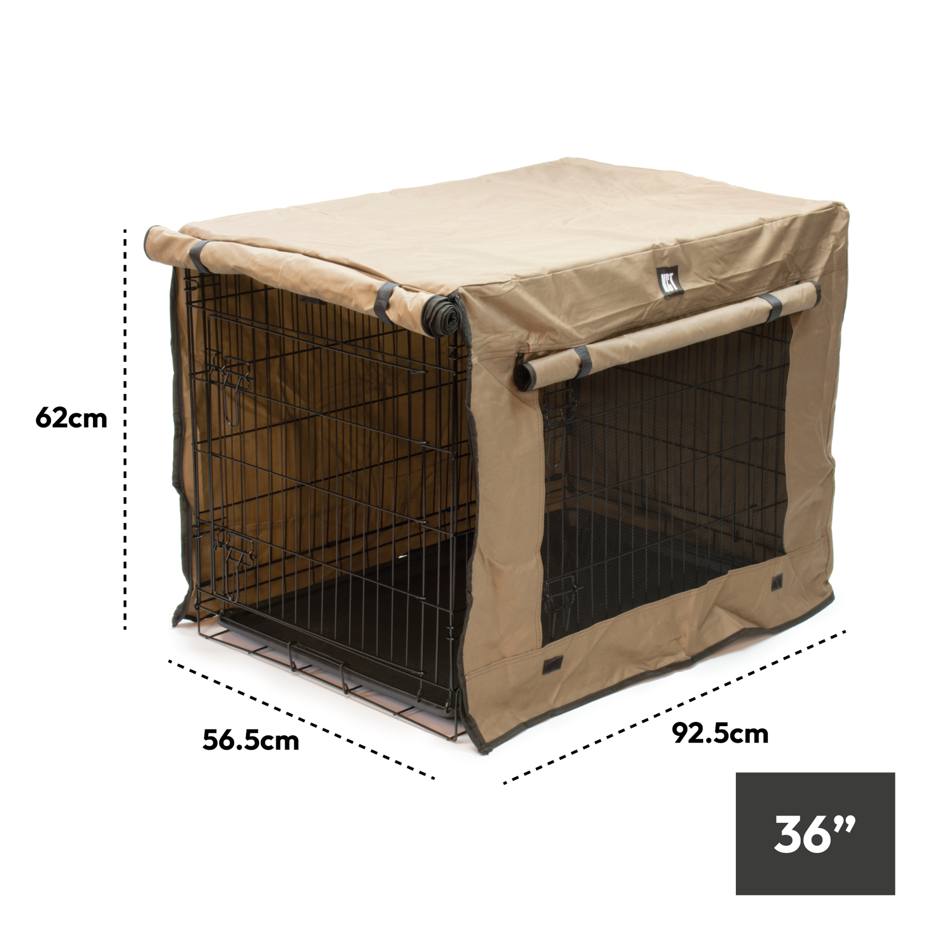 KCT pet cage covers are designed to fit perfectly over the corresponding size of KCT Pet Crate, but can also be used universally to cover any other pet cage of the same size and dimensions. The covers feature a double zip door that can be rolled up and secured with hook and loop patches to keep it open as well as a mesh window that can be covered or opened in the same manor.