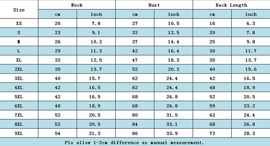Size: XS, S, M, L, XL, 2XL, 3XL,4XL,5XL,6XL,7XL,8XL,9XL