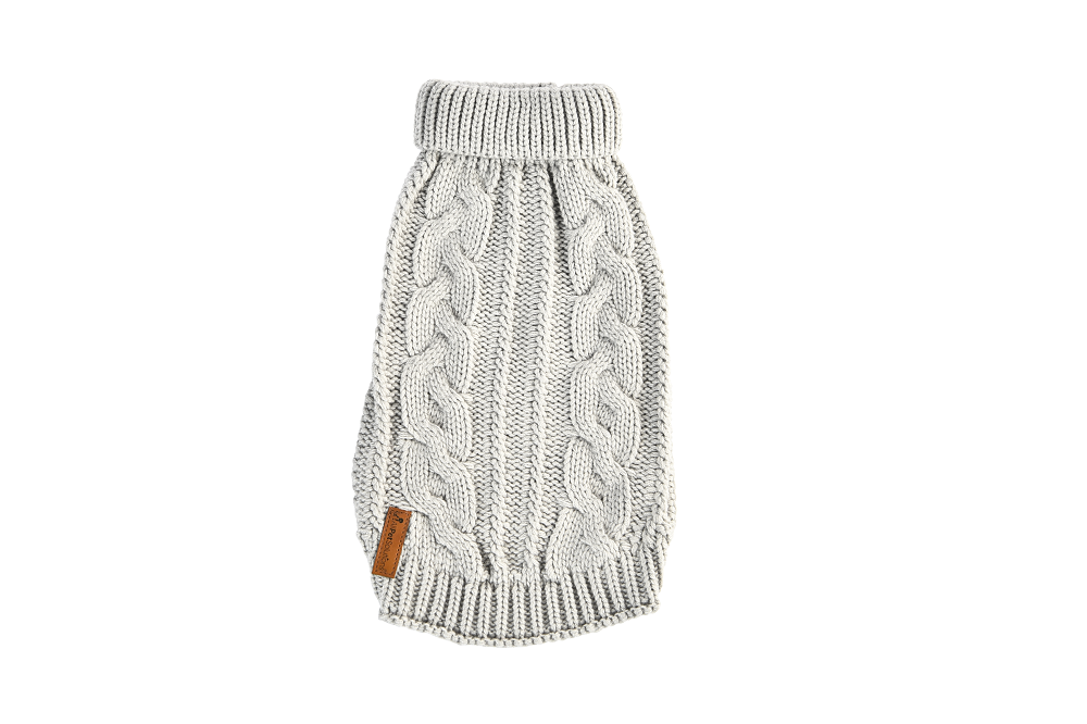 This cosy knitted jumper for your pooch from AllPetSolutions features a cable knit style, with a rolled neck for a comfortable fit. The jumper also features a leather branded badge.